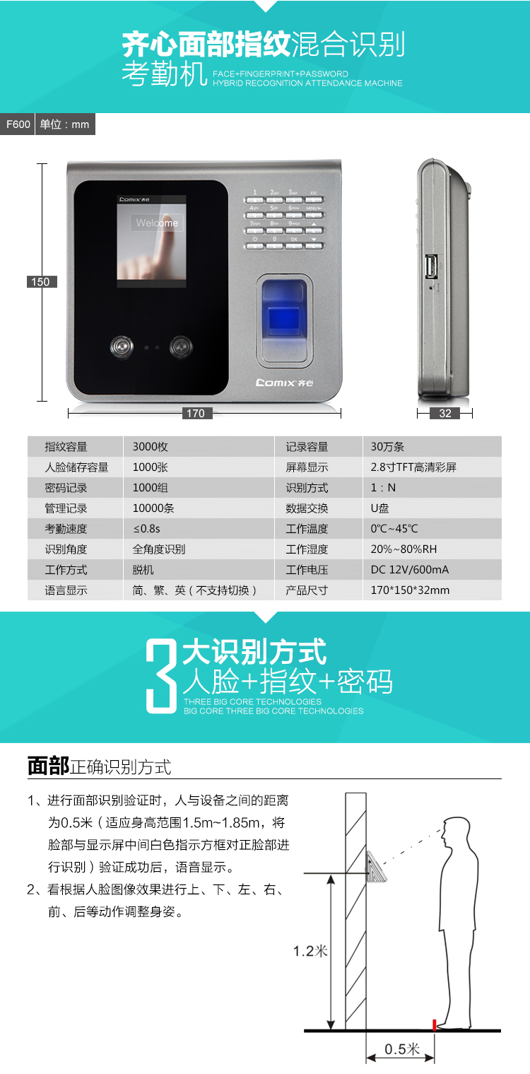 齐心(Comix)F600 面部指纹混合... 当商品进行补货时,我们将以短信、邮件的形式通知您,最多发送一次,不会对您造成干扰。 |