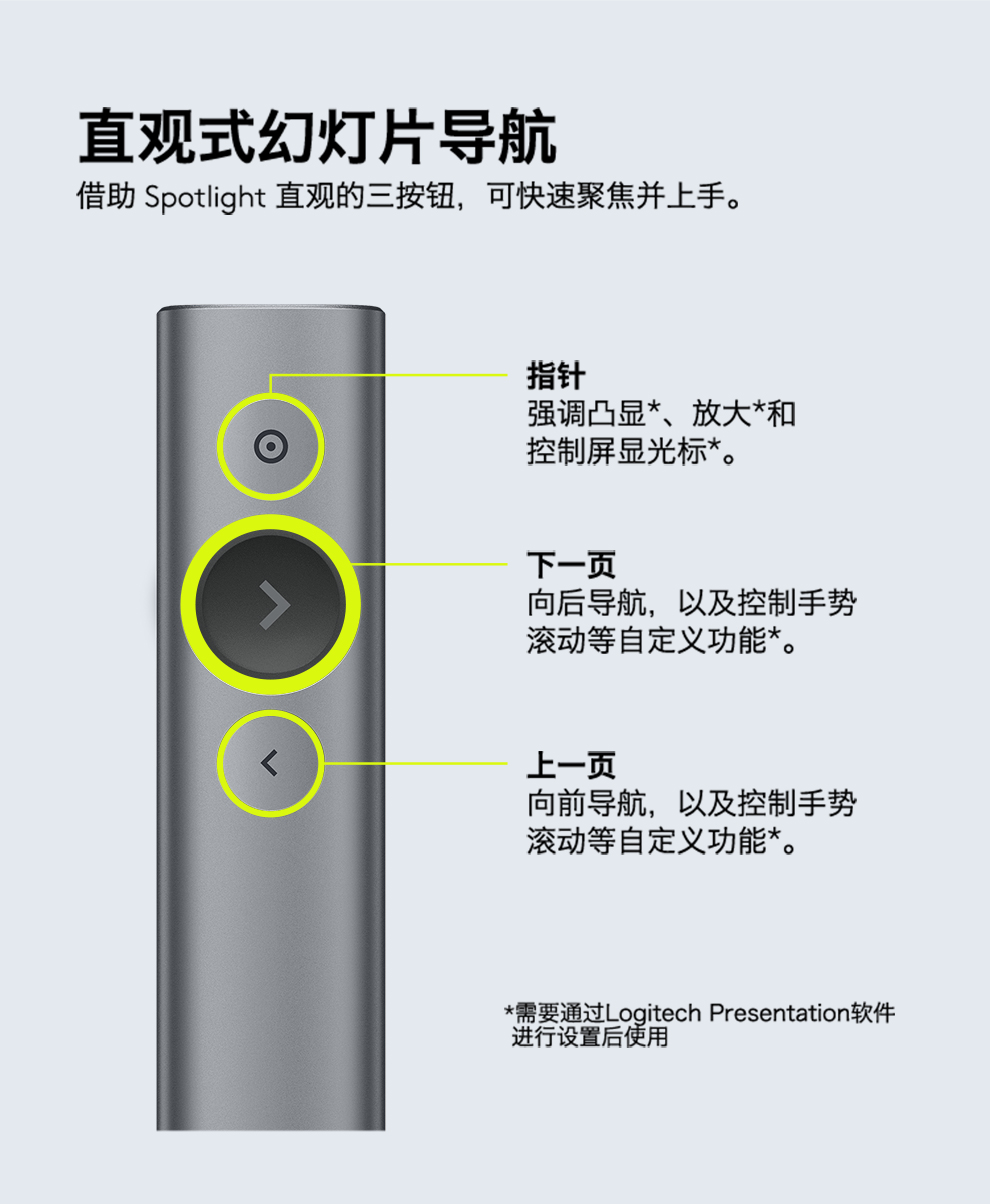罗技(Logitech)Spotlight 无线演示器 投影笔 翻页笔
