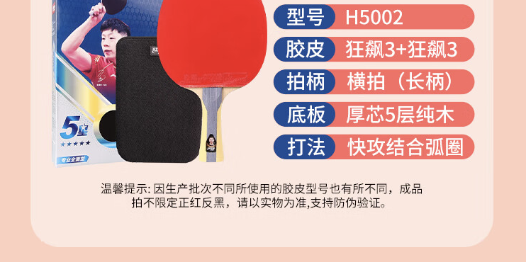 红双喜 五星级乒乓球拍 横拍H5002 ... 当商品进行补货时,我们将以短信、邮件的形式通知您,最多发送一次,不会对您造成干扰。 |