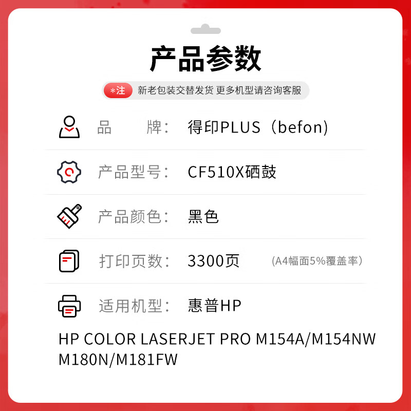 得印PLUS版cf510a硒鼓适用惠普2... 当商品进行补货时,我们将以短信、邮件的形式通知您,最多发送一次,不会对您造成干扰。 |